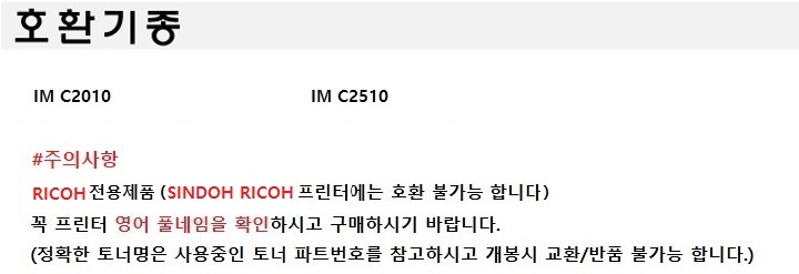 Á¤Ç°Åä³Ê > ½Åµµ/¸®ÄÚ > IM C2010, C2510 Àü¿ë (°ËÁ¤/Á¤Ç°)